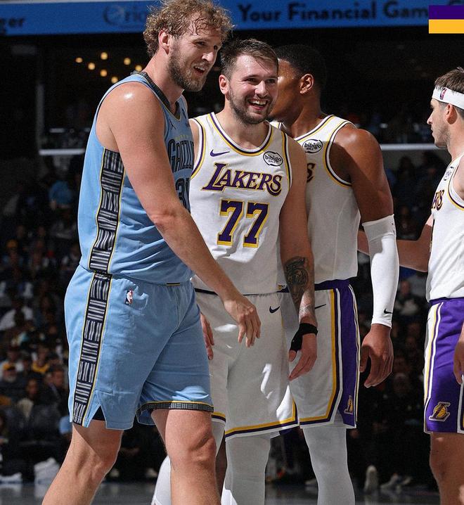 下半场,湖人连续造杀伤,东契奇三分再进湖人一波18-5攻击波追上比分,随后双方比分交替领先,三节湖人追到差2分,末节湖人7-0反超回,艾顿回到替补席,八村塁和东契奇三分再进领先双位数,随后灰熊追分湖人总能回应保持住10分左右领先,最终湖人逆转灰熊。